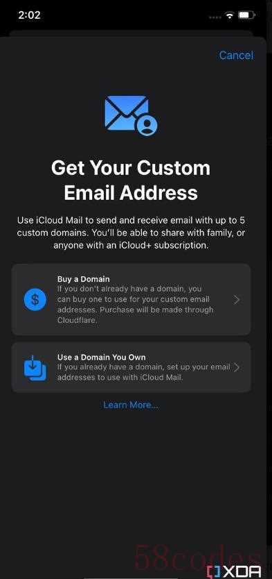 IT之家 6 月 18 日消息,苹果在 WWDC 2022 的主题演讲中发布了 iOS 16、iPadOS 16 等操作系统更新,带来了许多新功能。据 XDA 报道,iOS 16 上的邮件 App 已支持购买自定义域名。