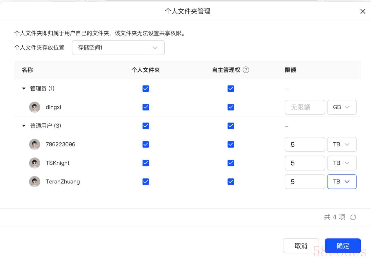 创建完毕后我们就可以开始上传文件,这里需要注意的是,DXP4800提供了「个人文件夹」、「共享文件夹」和「用户文件夹」三个选项,你可根据需求创建不同的文件以便后续使用,这里就不过多赘述。
