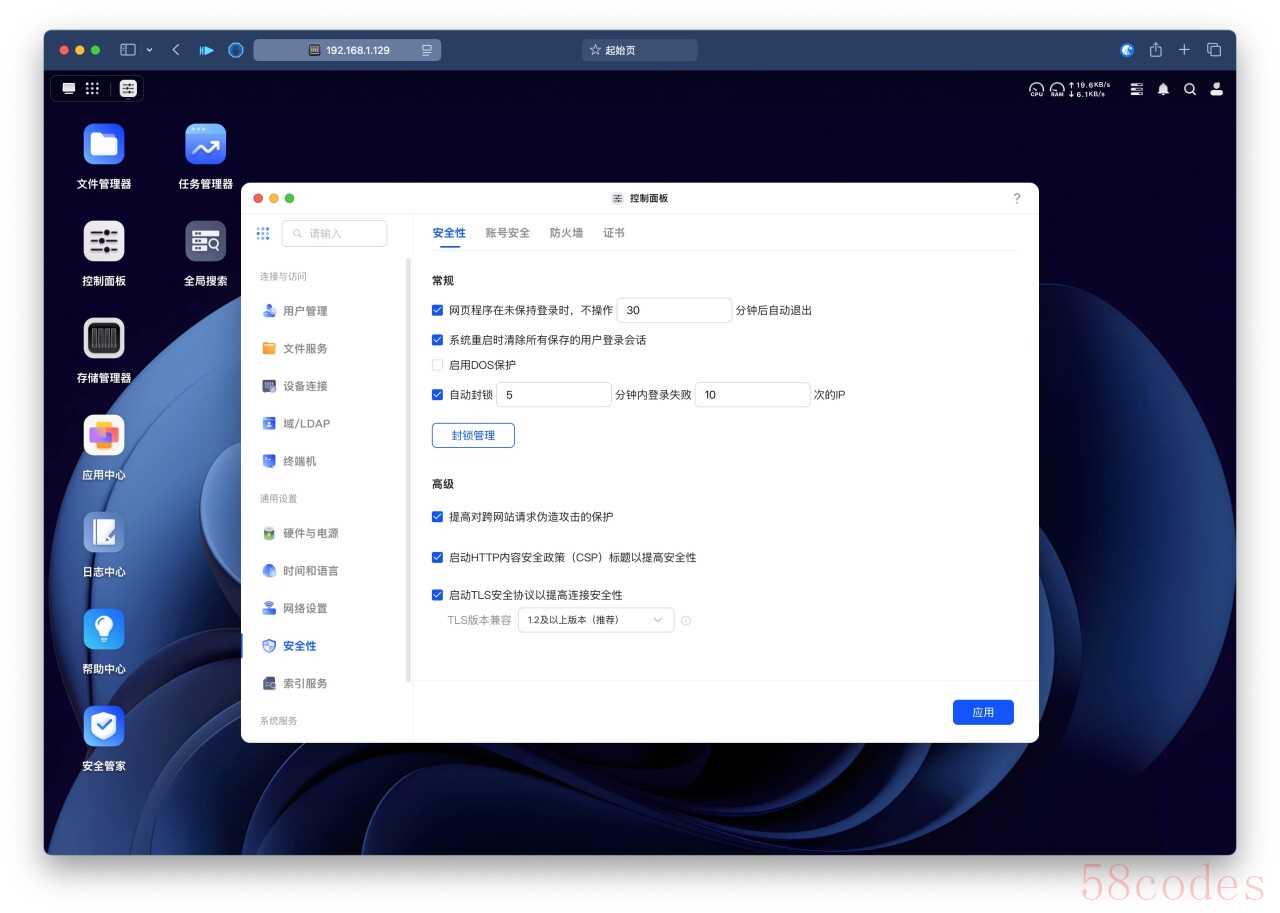 安全防护是不少小白用户容易忽视的点,但自己搭建又十分麻烦,好在绿联官方提供了一套完整的安放系统:支持定时查杀的本地防护系统、支持自动登出、封锁其他IP登录、自定义安全协议、端口限制以及二次确认登录等等。