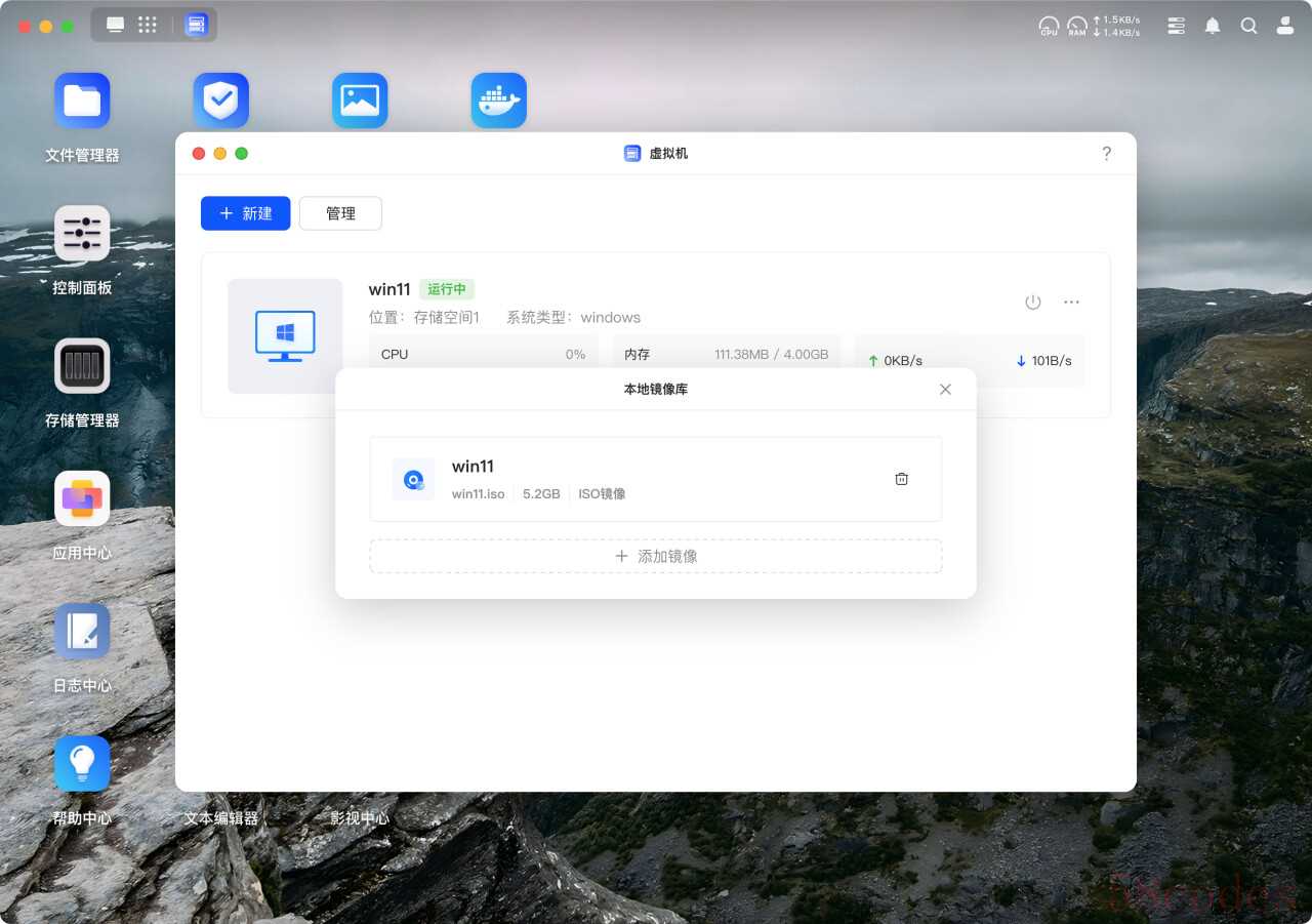DXP4800自带虚拟机应用,导入在网上下载的映像文件后即可开始运行,整个流程不复杂,简单来说就是提前给虚拟机设置好相应的CPU、硬盘大小、网络和运存数据,其他全部可保持默认。
