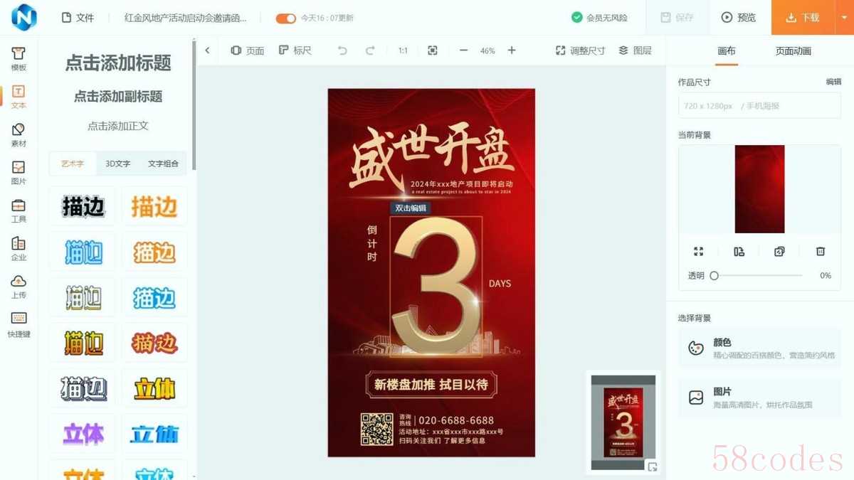 以制作 A3 宣传海报为例,用乔拓云云设计的全栈可视化操作,从新建画布到导出文件,全程把控 DPI 和像素,无需专业印刷知识。