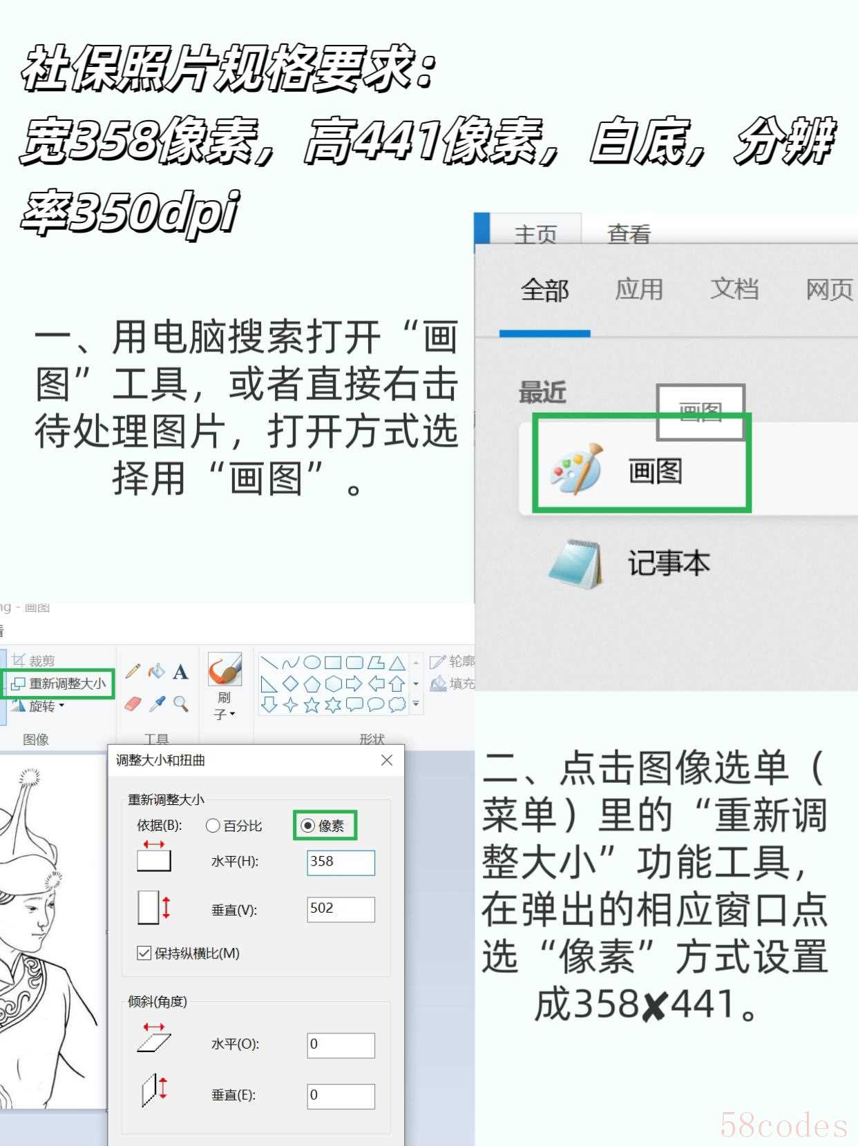 将社保卡照片调整为 358×441 像素,通常需要使用图像编辑软件。以下是使用几种常用软件的操作方法: