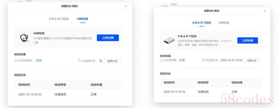 另外针对硬盘健康,绿联的NAS中还内置了丰富的检测工具,SMART就不说了,大家都知道。IHM检测是希捷酷狼NAS硬盘所特有的一种硬盘检测工具,它主要通过持续监控和分析硬盘的运行状态,帮助用户预防数据丢失的风险,属于希捷独有的技术,这在其他硬盘上是见不到的。