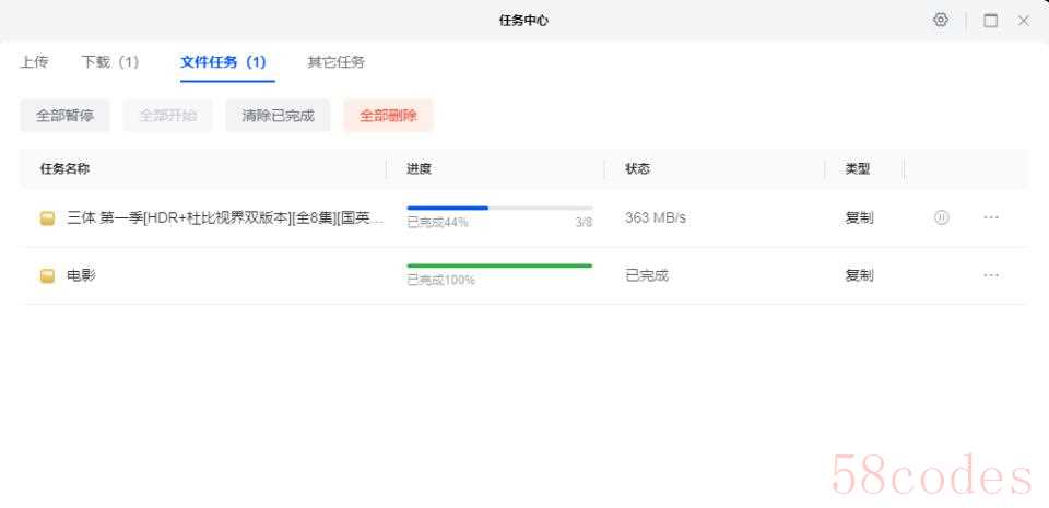 机械硬盘的读写速度和接口、转速、文件类型、缓存大小等因素有关,希捷酷狼NAS硬盘最大读写速度在180--240MB/s之间。绿联DXP4800 Plus私有云上有USB 3.2 Gen 1接口好几个,这里我通过外接1TB移动固态的方式测试了从外部传输文件到NAS上的表现,如上图,传输高清影视资源时,硬盘最快写入速度能达到360MB/s,最慢的时候也在190MB/s以上,已经达到了机械硬盘的最大瓶颈速度。