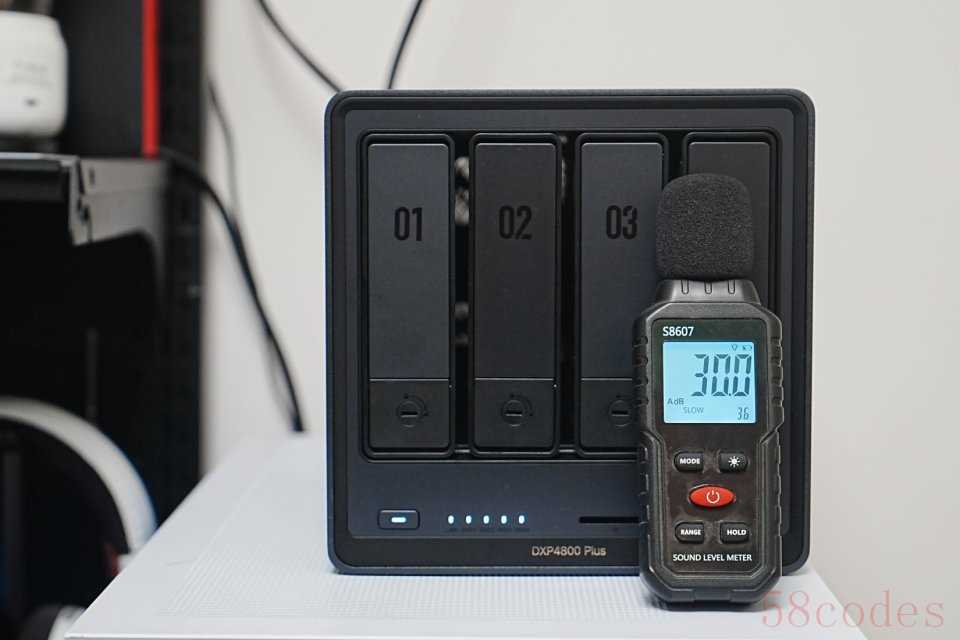 经常玩NAS的小伙伴应该对二手盘高速运转时的噪音都有所感悟,对于笔者这种耳朵灵敏,睡眠不好的用户而言我是受不了。所以设置好第一件事,我就开启相册自动备份功能,让硬盘全速运行起来。实测全力运转状态下,硬盘噪音没有超过30分贝,不是贴近NAS去听,很难听到异常的噪声,炒豆子声更是没有。
