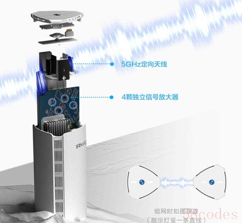 和许多其他主流的MESH路由器不一样,,锐捷星耀M18 采用了定向天线来提升MESH组网体验。通过定向天线+四颗独立信号放大器,锐捷星耀 M18在特定方向上的信号传输能力更为出色。用户在使用时,将用来组MESH网络的两台星耀M18指示灯对齐,可以提升MESH组网距离和组网强度,进而提升全屋网络体验。所以我们将两个路由器摆放的时候,可以稍微注意一下,将两组天线进行直线摆放,效果会更好。当然主从路由器之间通讯质量好不好,我们还可以通过路由器上面的指示灯可视化判断,如果路由器上的信号灯满格,证明两台路由器连接通畅,如果路由器上的指示灯在两格以下,证明MESH连接不理想,建议用户重新调整路由器位置,以获得更好的组网体验。