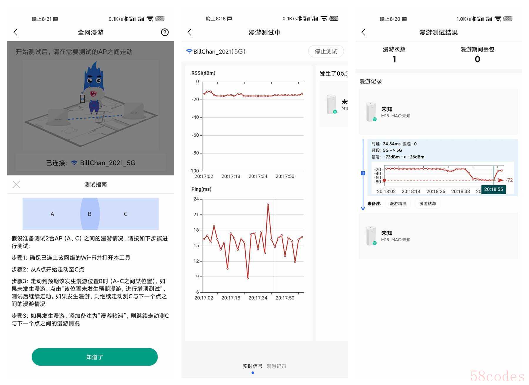 对于家用的我来说,能实现无缝网络漫游切换,不至于打游戏在屋内走动掉线就够了,经过漫游测试我们可以看出,锐捷星耀 M18的网络切换是非常顺滑的,没有出现丢包的情况,所以在实际体验中无需担心主、从路由之间的切换,不会有明显的掉网情况出现了。