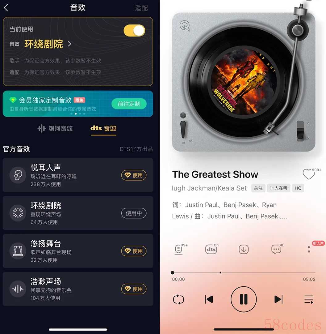 展现音乐的丰富层次如今DTS与QQ音乐携手,在音乐流媒体平台将好莱坞的音效算法和对高品质声音还原的编码能力带入音乐流媒体领域。DTS提供悦耳人声、环绕剧院、悠扬舞台、浩渺声场四种音效。