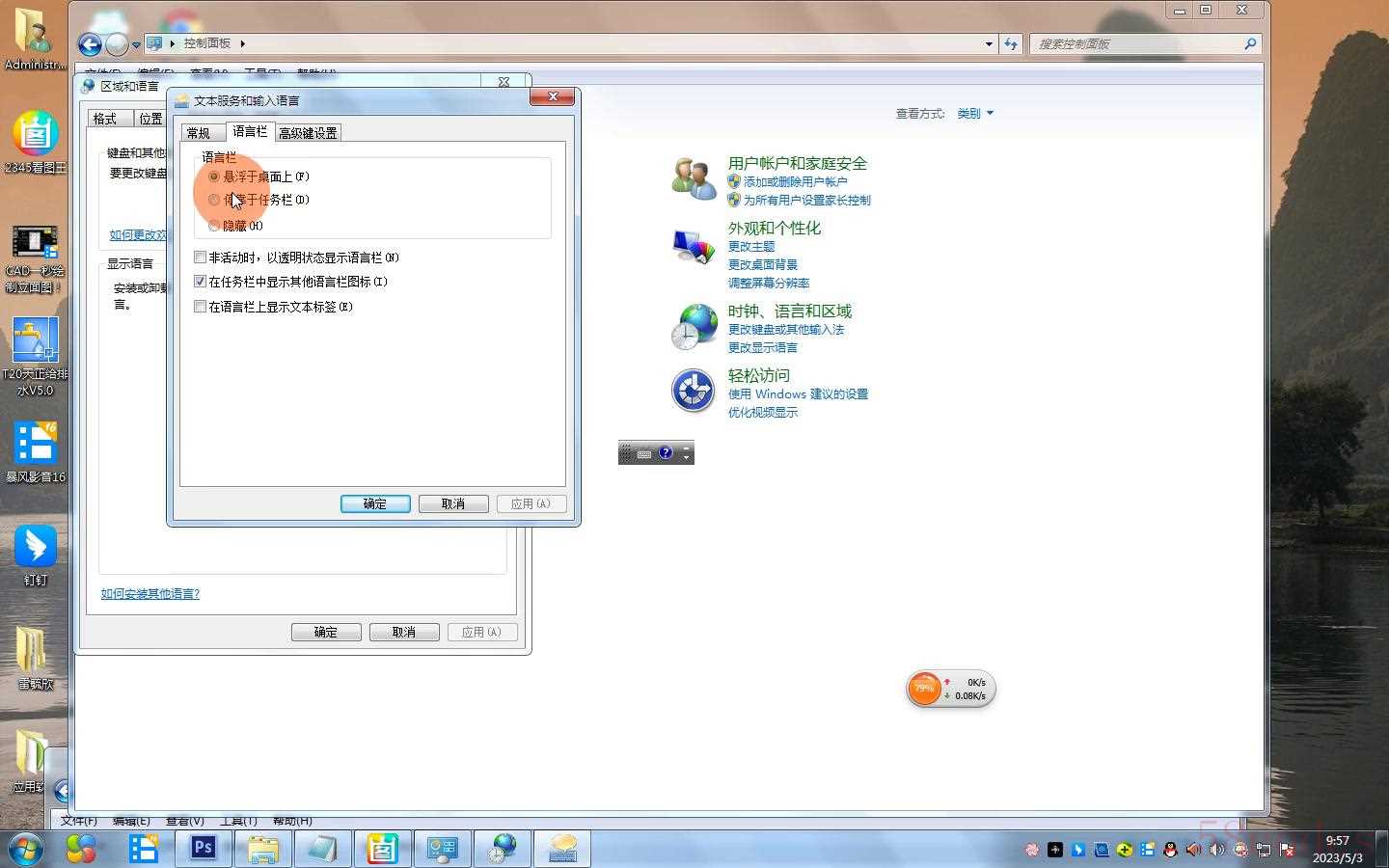 这个问题差不多,如果想显示就停靠于任务栏,如果将隐藏就点击隐藏,确定就行了。
