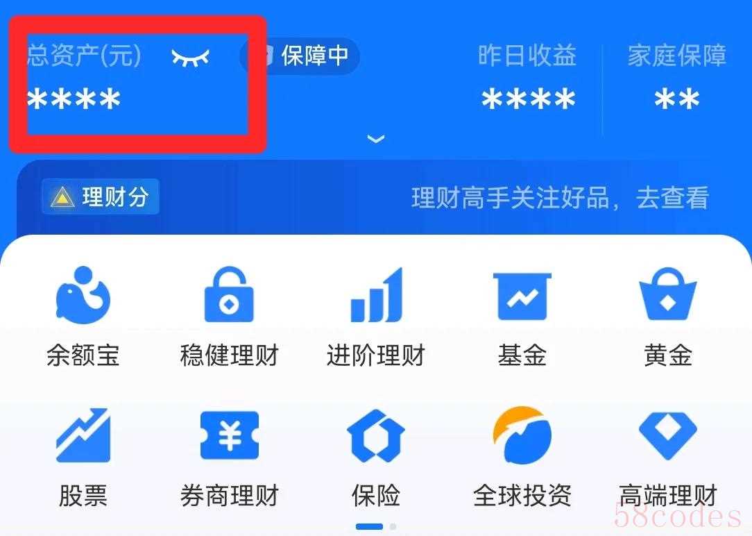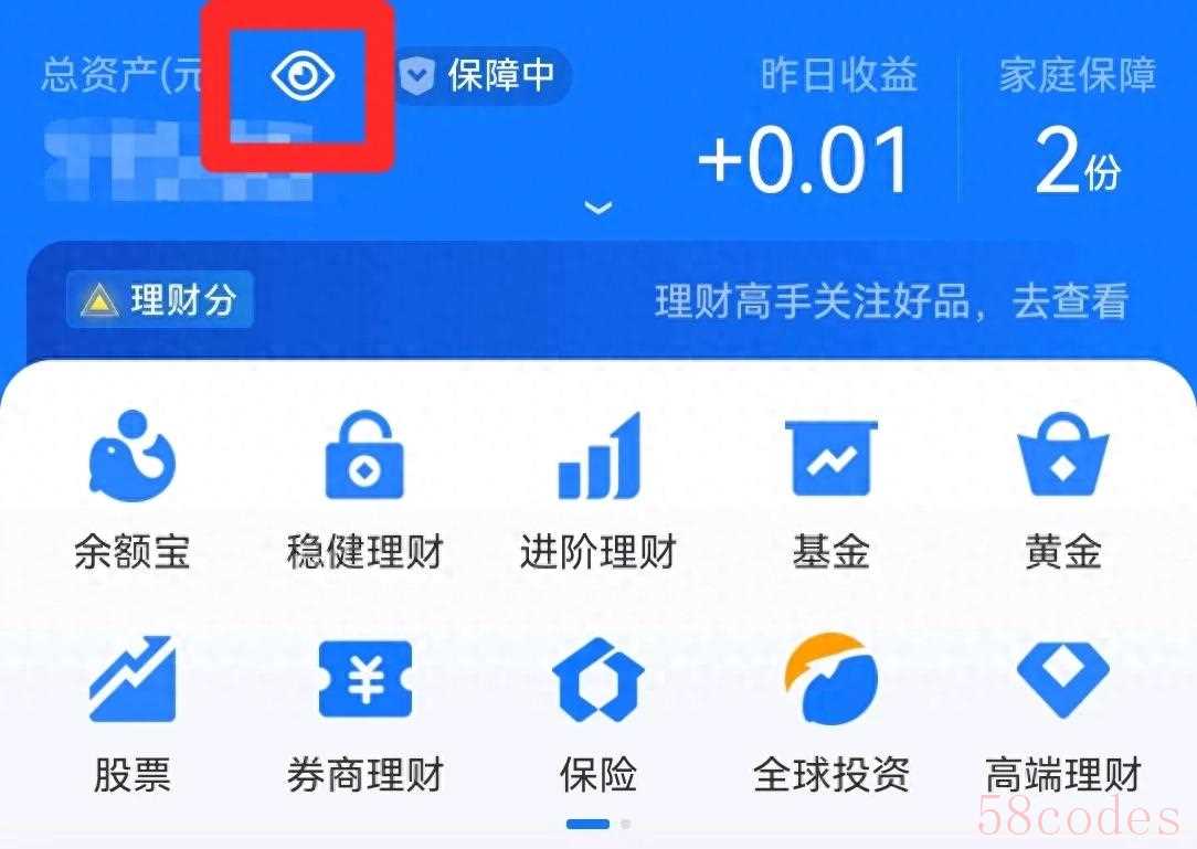 支付宝比较简单,找到理财这一栏,总资产,或者余额后面会有一只眼睛。当它睁开眼,金额就会显示,点一下,它就会闭上眼,金额也会隐藏。