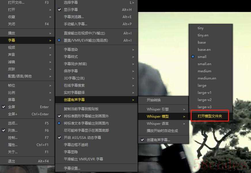 文件下载了安装到哪里???右击窗口→选择字幕→创建有声字幕→Whisper模型→打开模型文件夹,新建文件夹faster-whisper-small,使用其他模型就更换相应模型的名称,将下载的config.json、model.bin、tokenizer.json、vocabulary.txt的这4个文件放到文件夹里,在字幕→创建有声字幕→Whisper模型→选择small。