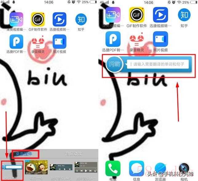 步骤:长按桌面空白处,进入编辑模式→【桌面挂件】→找到【快速查词】