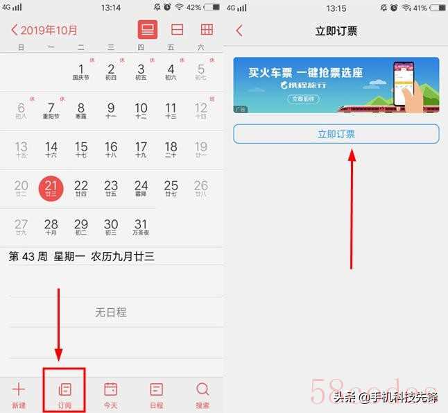 步骤:打开手机【日历】→【订阅】→【火车票】→【立即订票】→【无需安装,一点就开】,这样就可以了。