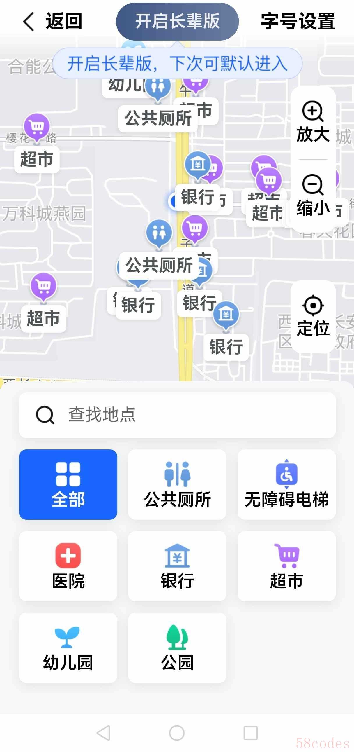 高德最近推出长辈版,这个功能做得挺用心,它没有简单放大字体,而是把银行、药店、菜市场这些老人常去的地方直接放在首页,图标也设计得更大,点起来很方便,还增加了AR实景导航,你往前走的时候,手机摄像头拍到街景,箭头就显示在真实建筑上,比如提示“前面红墙楼拐角右转”,这样不用分辨方向,看着眼前的东西就能走,语音也会跟着提醒,“偏离路线了,50米后左转”,你听着声音就行,不需要一直盯着屏幕看。