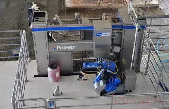 挤奶工作全部由机器人独立完成,无需任何手工。机器人安装在奶牛圈舍旁边,奶牛一旦需要挤奶,会自动排队等待机器人服务。这时,机器人会先对奶牛的乳房进行扫描定位并进行清洁消毒,通过自动感知把吸奶嘴固定好,然后挤奶。