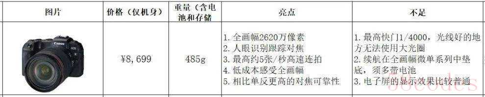 推荐度: 四星理由:佳能全画幅微单系列的初代实验机,与5D4同一定位。除了操控性略弱和单卡槽外,没有特别大的缺陷。属于水桶机型,用来拍照性价比很高。EOS RP