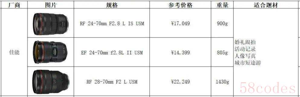 1)佳能原厂RF版本的24-70mm还带防抖,比EF版本更优秀。2)RF卡口还有一支28-70mm f2,虽然没有24mm的小广角,但是 光圈大了一档,对弱光环境适用性的提高是很有意义的。3)这个焦段的镜头 不建议选择f4光圈版本。