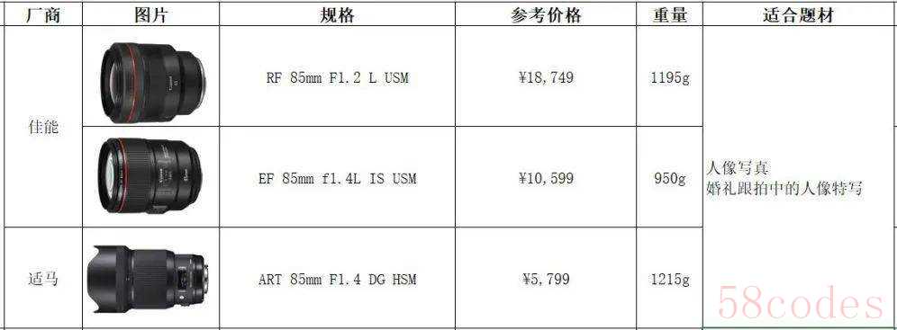 1) RF卡口85mm f1.2配合R系列机身极高的对焦可靠性,能发挥出 超大光圈的实力,拍出真正“刀锐奶化”的效果;2) EF卡口85mm f1.4也值得考虑,出的比较新,还带 防抖;3)适马ART 85mm f1.4自从面世起就以 极高的锐度和性价比得到了市场的肯定,适马“黑科技”名号的重要扛鼎之作。