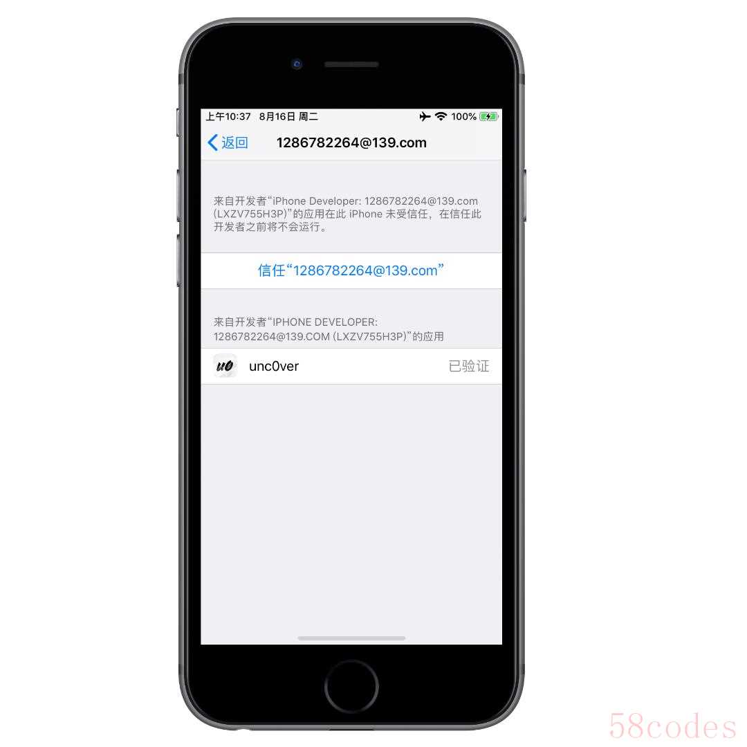 (其实这里的一键越狱,就是给你手机端安装了这个已经签名好的APP:unc0ver),你也可以自己签名安装这个APP,这里一键就完事儿