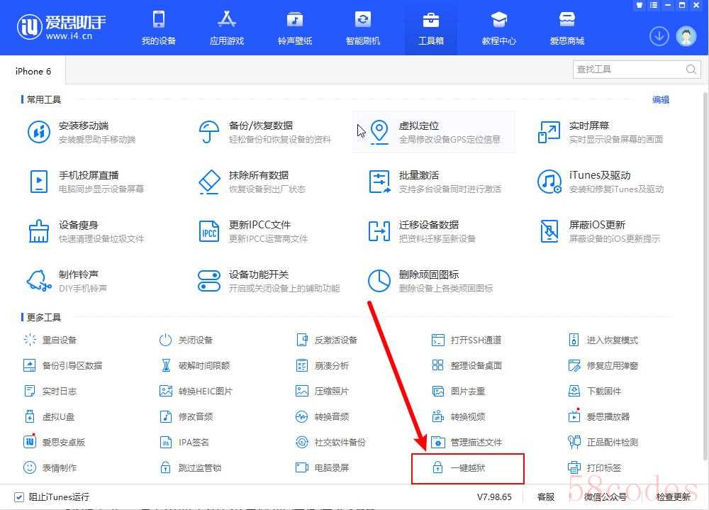 1.使用爱思助手的一键越狱即可,虽然重启手机会掉越狱,但是还算稳定,不重启手机就好了嘛。