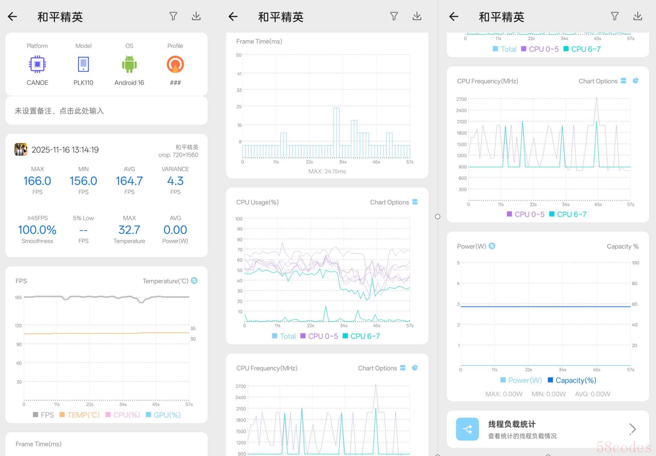 165Hz 的高刷新率,让游戏画面的流畅度提升明显,更早的发现敌人、快速移动、技能释放时,没有丝毫拖影,视觉体验更流畅,也能让我更快捕捉到游戏中的关键信息,竞技体验直线上升。当下手机游戏也逐渐在提高用户体验,高帧游戏实测玩《和平精英》165帧模式,连续玩长时间玩依然能够保持到极高的平均帧率,在冰河 VC 散热系统下手机发热也不是很高。