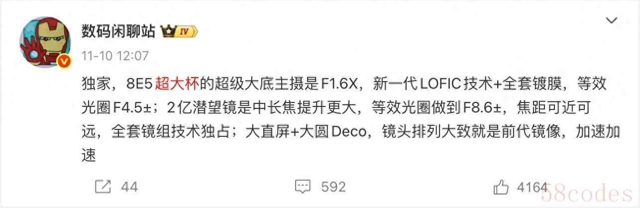 长焦部分也是大幅跃迁。新机采用 2 亿像素的潜望镜头,搭载新的 4×4 RMSC 技术,可在多焦段实现无损变焦,并支持“长焦微距”这种更具操控感的拍摄方式。焦距范围跨度大,可近可远,镜组方案是厂商独占。据爆料,这颗潜望镜的动态范围也很高,并且能与主摄的片上变焦(ISZ, In Sensor Zoom)进行无缝衔接,实现跨焦段的画质统一。关注影像体验的用户往往会担心中间焦段是否会出现过度依赖裁切的问题,不过爆料博主明确否认了“中焦降级成小底传感器”的说法。此前外界曾质疑新机是否放弃独立中焦方案,而爆料显示,本代的中焦体验仍将维持旗舰级标准。
