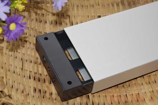 ▲奥睿科将硬盘的接口统一放在了一端。让硬盘更显简洁整齐。好了将硬盘嵌入硬盘盒内我们就可以将硬盘整体组装起来了。硬盘表面的金属拉丝工艺是不是很有科技范呢?后面还有很多散热孔。