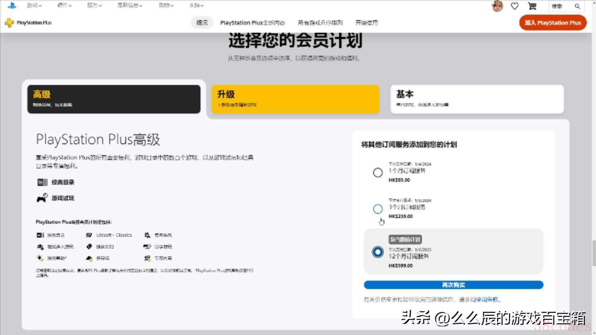 机器没到,但已经注册好了港服账号,是可以提前购买会员的。最直接的方法就是登陆港服PSN官网,直接购买会员。购买后在页面领取当月的会免游戏,直接添加至内容保存库即可。这样机器到了之后,就能直接下载玩了。