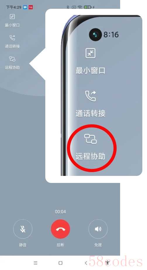 第四点,在被控的小米手机点击左上方顺数第三个【远程协助】按钮。允许权限后,小米手机屏幕下方会出现一串【6位数的协助码】。