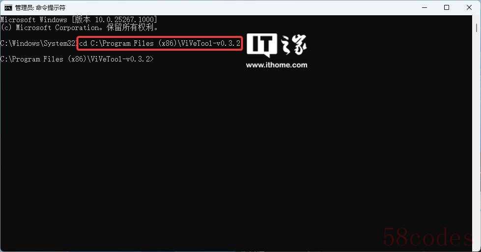 4. 使用 cd 命令跳转到 ViveTool 文件夹,例如“cd C:Program Files (x86)ViVeTool-v0.3.2”
