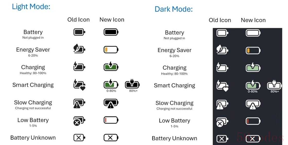 视觉层面,任务栏的电池图标也得到了实用性升级。新图标引入了彩色显示功能,能更直观地反映电池状态:低电量时呈红色,充电时为绿色,开启节能模式则变为橙色。