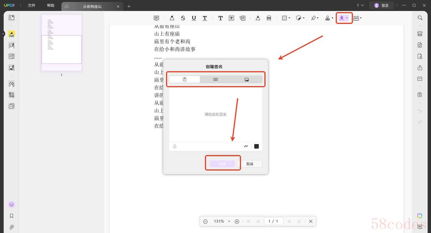 点击左侧的【注释】图标,选择【签名】功能,选择创建签名,可以通过鼠标、键盘和图像来添加签名,还能移动前面的位置、颜色和粗细,最后将文件保存即可。