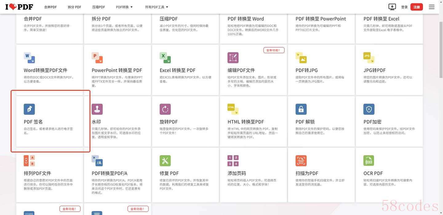 一个在线的PDF转换和编辑网站,支持PDF压缩、签名、选择和添加水印等多个实用功能,网站的界面很简洁,打开就能找到需要的功能,很方便。