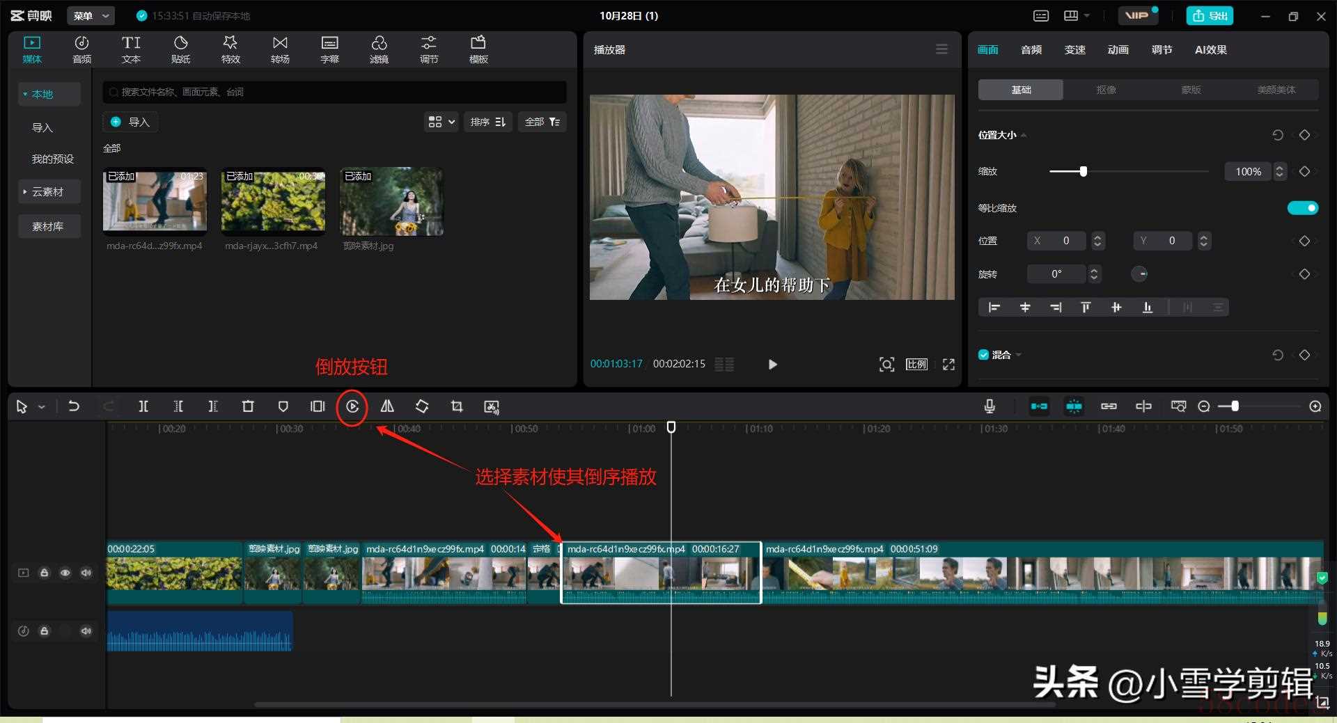 - 处理过程:点击倒放工具后需等待系统完成渲染,处理时间取决于视频长度。