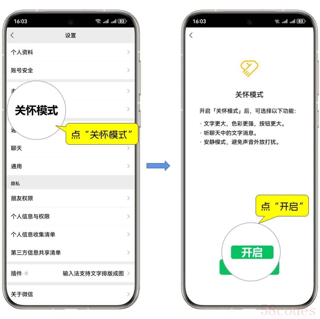 但其实微信里藏着一个专门为老年人量身打造的“宝藏功能”——关怀模式,好多阿姨爷叔可能还没发现呢!这个模式就像给微信“调了个舒适档”,字体能变大、声音能变响,操作也更简单,特别适合长辈们使用。 (点击图片,查看大图更清晰)