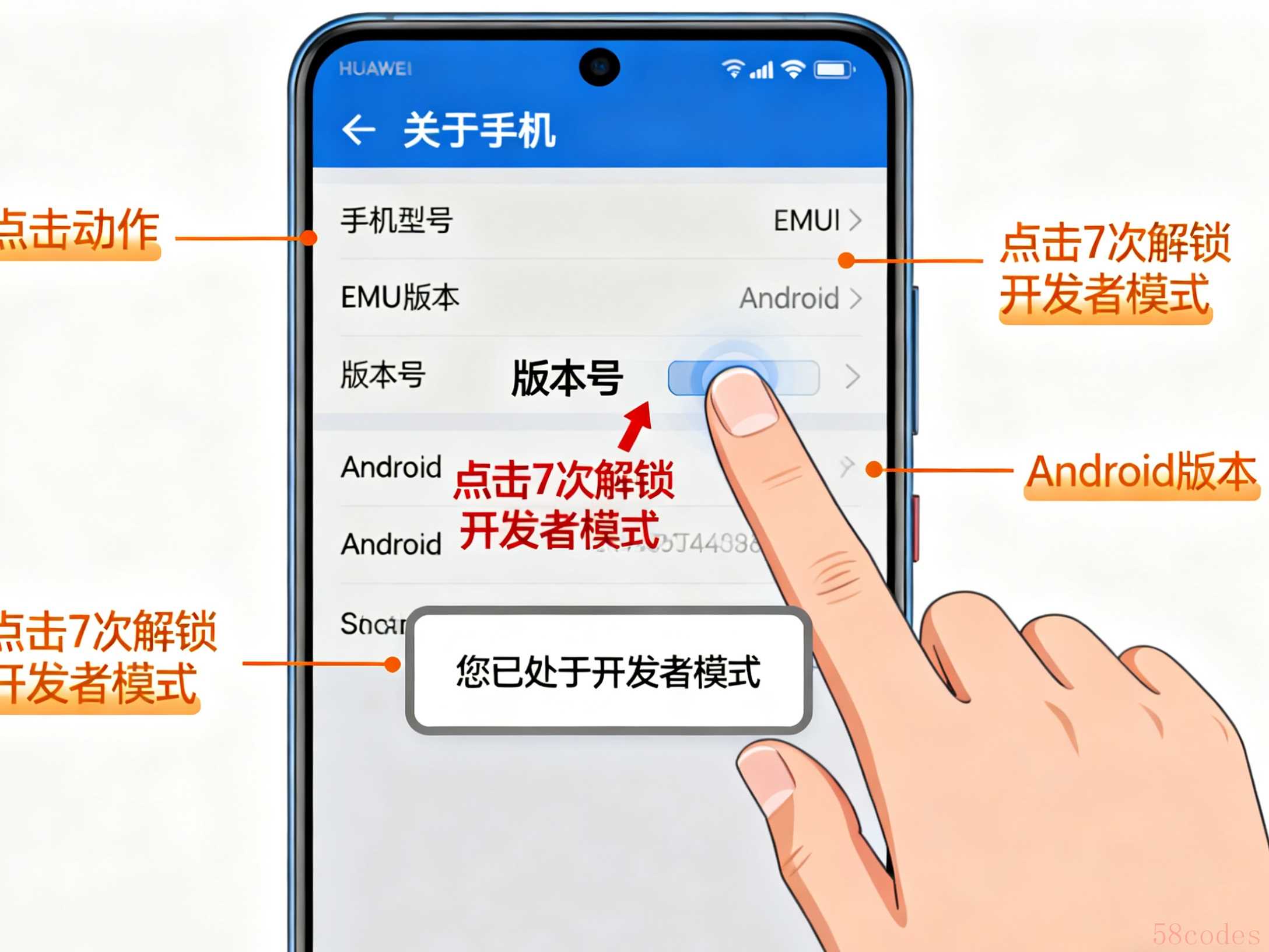 第一步:解锁开发者模式 打开手机【设置】,往下滑动找到【关于手机】(部分机型在“系统与更新”里),点击进入后找到【版本号】选项,连续快速点击7次。点击过程中会提示“还剩X次解锁开发者模式”,完成后会弹出“您已处于开发者模式”的提示,这一步就完成了。