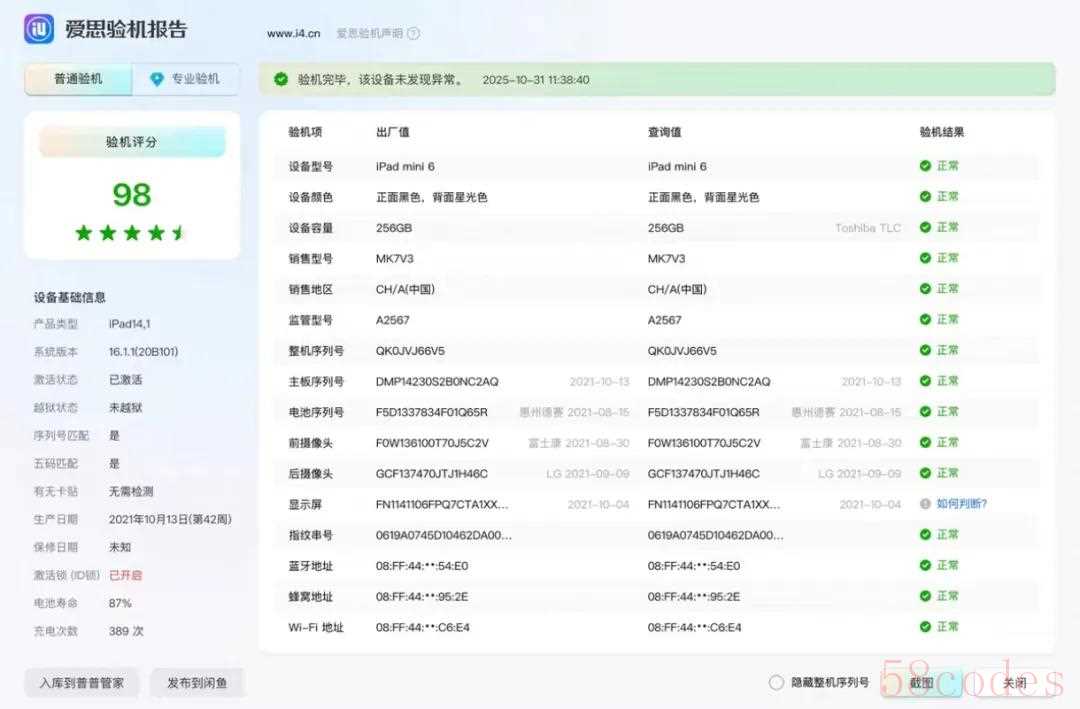 买二手iPad mini6还是要用爱思去验机,重点看有没有换过屏,是否能开原彩,它还有指纹失灵和音量键“+”失灵的通病。另外买二手iPad mini6最好选低版本iOS系统养老,像iOS 16.6还可以安装巨魔。