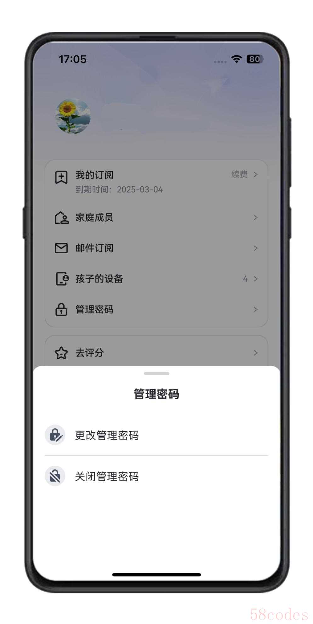 原因2:【管理密码】是可以随时关闭或更改的。一旦关闭或更改,孩子就不能利用原密码解开限制,想要延长使用手机或APP就要得到控制端点击允许。