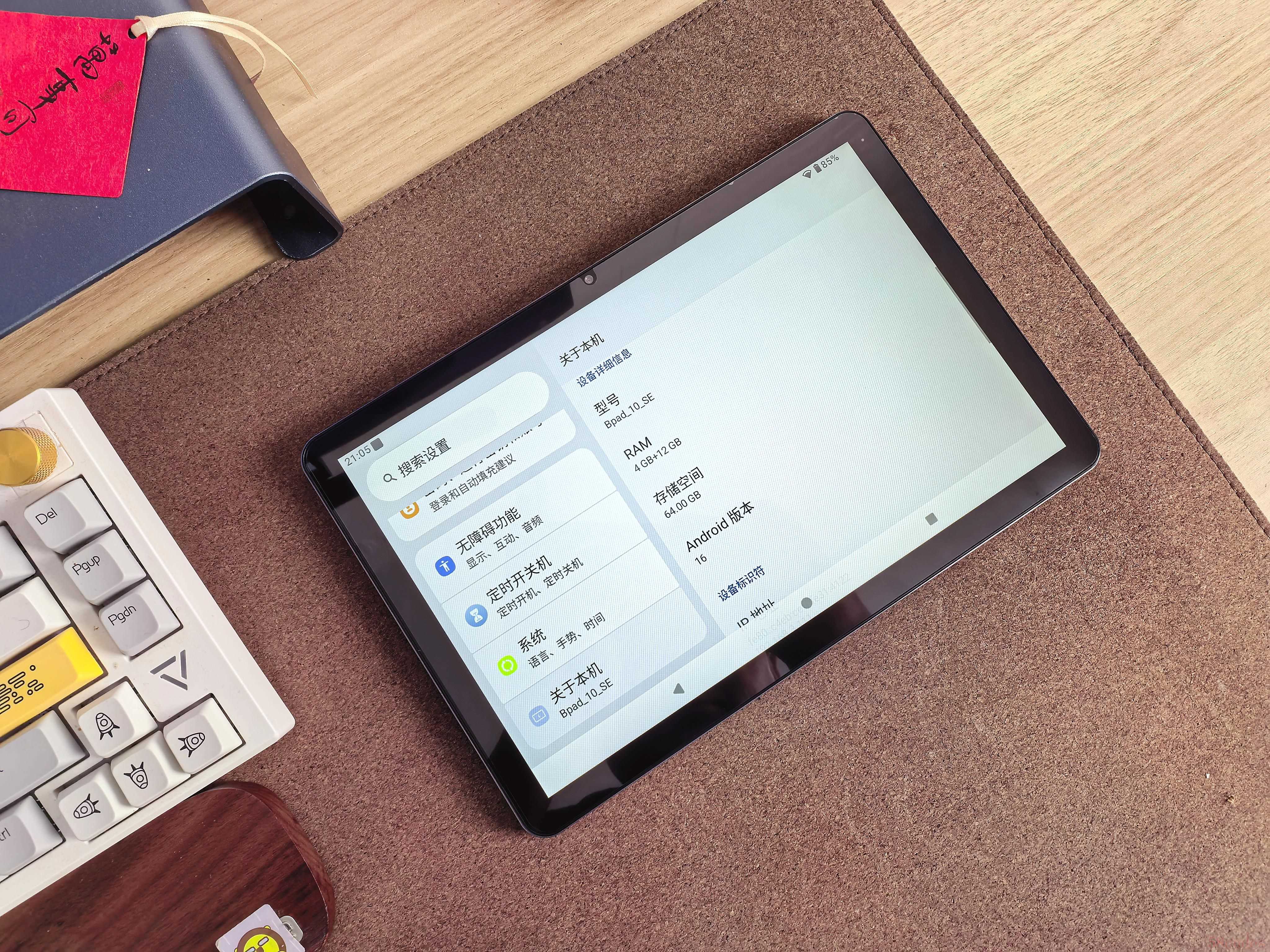 打开包装,BPad 10 SE给我的第一印象是“扎实”。金属机身带来了远超这个价位的质感,摸上去凉凉的,很有档次。445克的重量和8.2毫米的厚度,对于一台10.1英寸的平板来说,把控得非常好,孩子单手握持不算太吃力,老人拿着也不会觉得沉。