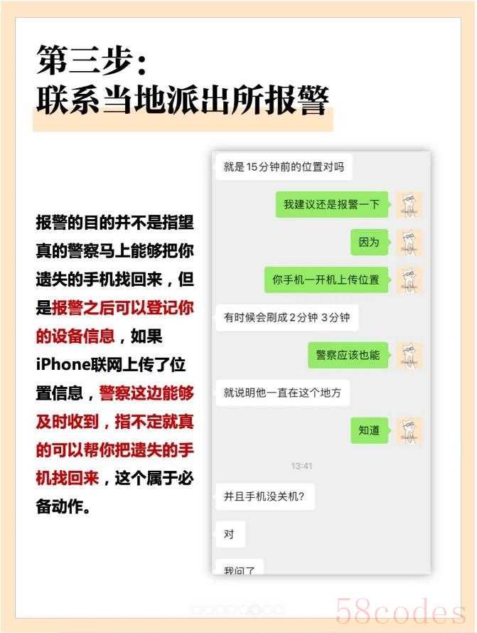 报警的目的并不是指望真的警察马上能够把你遗失的手机找回来,但是报警之后可以登记你的设备信息,如果iPhone联网上传了位置信息,警察这边能够及时收到,这个属于必备动作。
