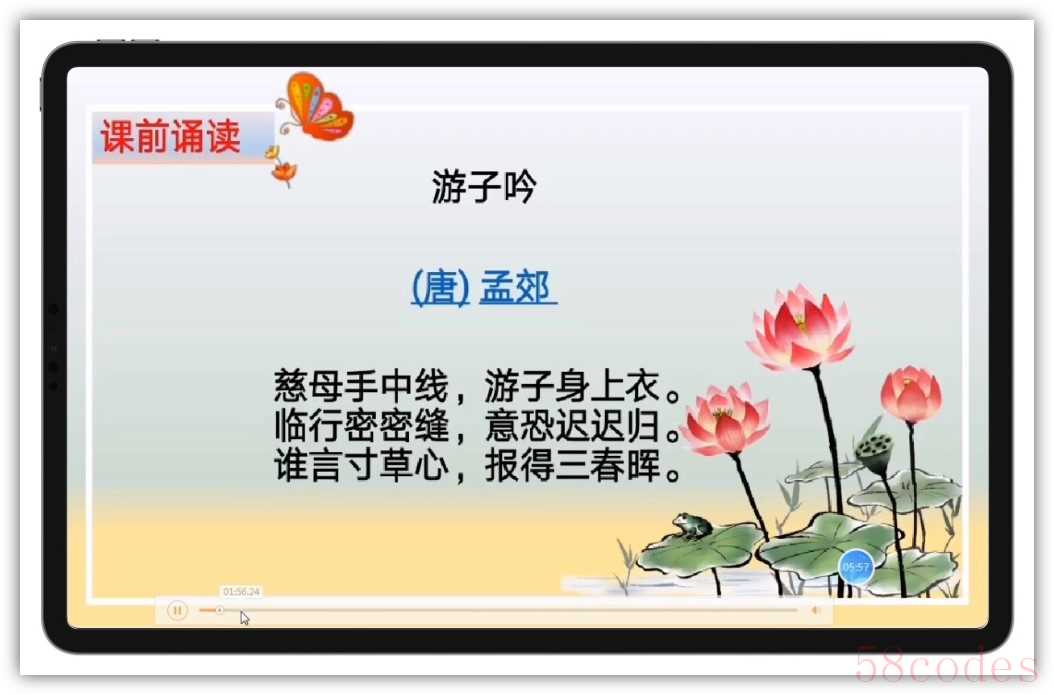 接下来我们开始录制,先从WPS中打开PPT课件,翻到课件的首页,进行全屏展示;然后开启手机录屏功能,在录制的时候,要将手机横屏;课件的切换,点击屏幕右侧即可,配合着纸质教案,进行课件讲解。