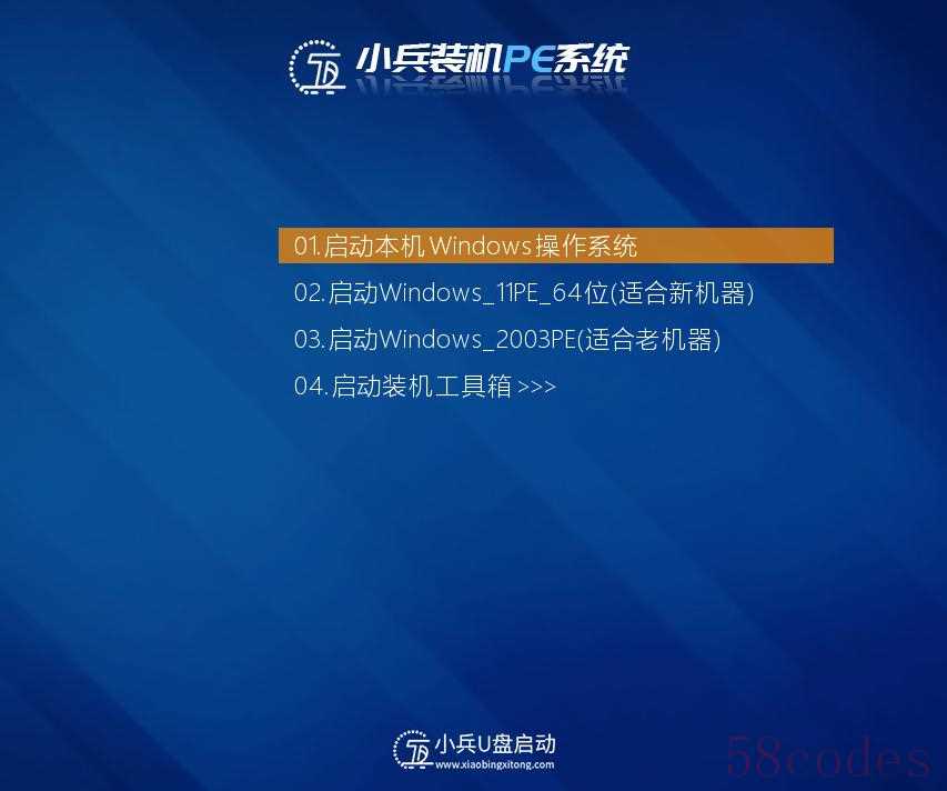 2、最后我们选择放入U盘中的pes.iso(小兵U盘启动iso程序)进行启动,就可以看到PE启动界面,如下图所示;
