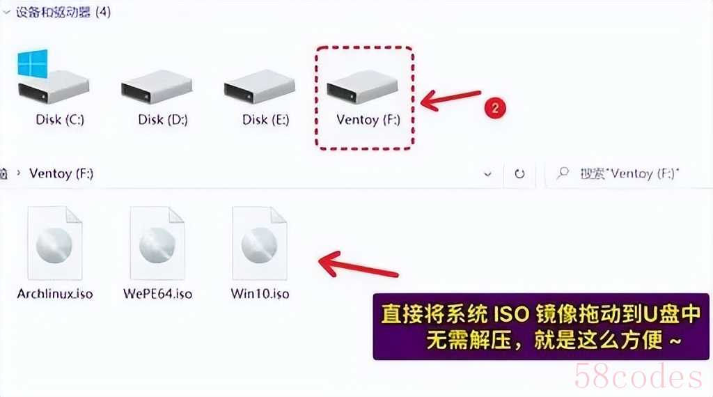2,然后将pes.iso文件拷贝到ventoy制作好的U盘中,如下图所示;