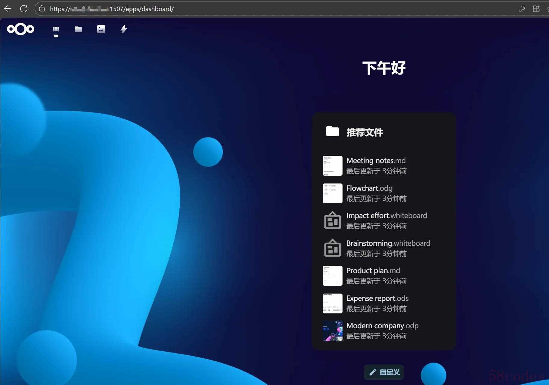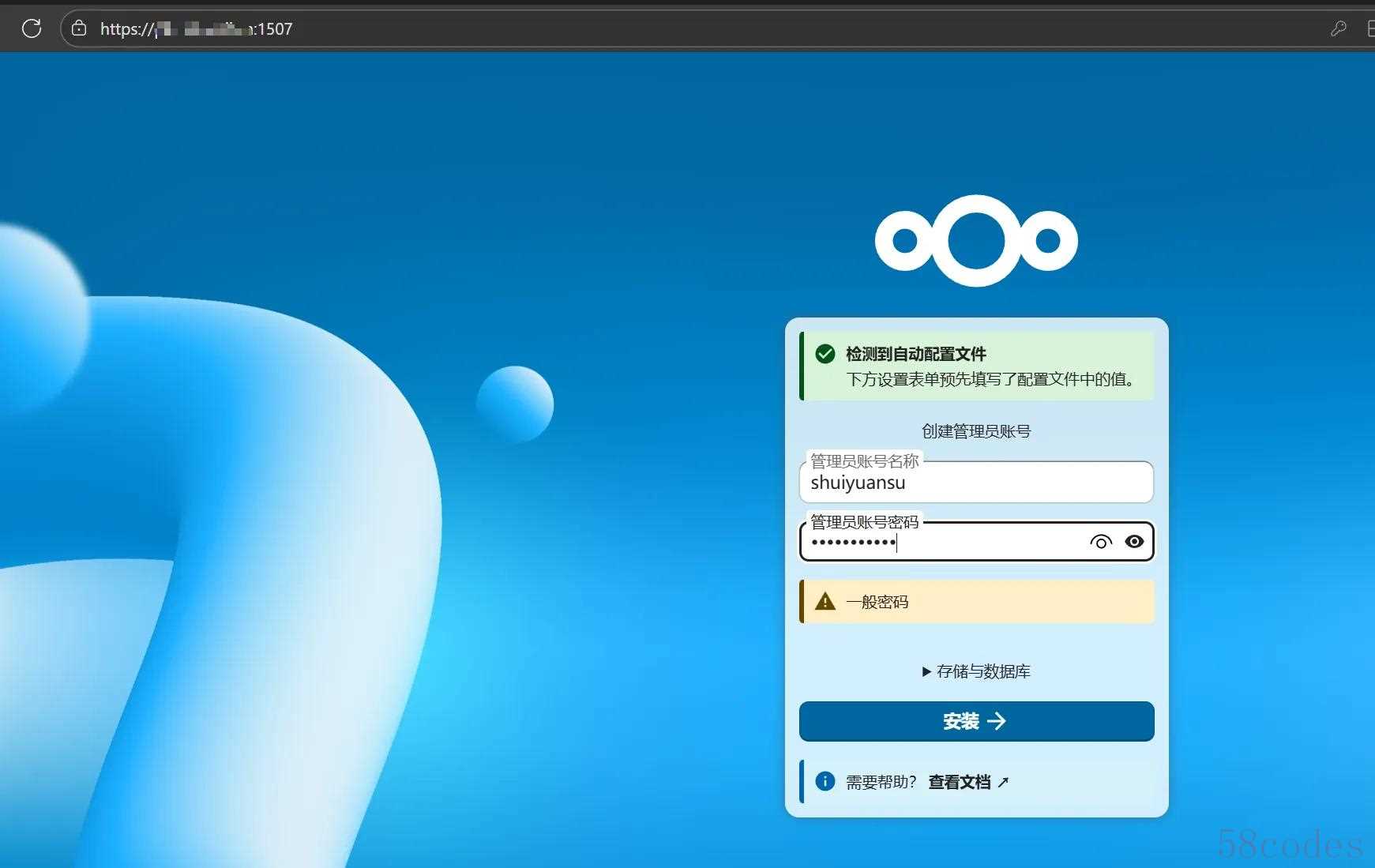 https://nextcloud.example.cn:1507只要本地防火墙和云服务器安全组中放行了该端口,就可以正常使用。