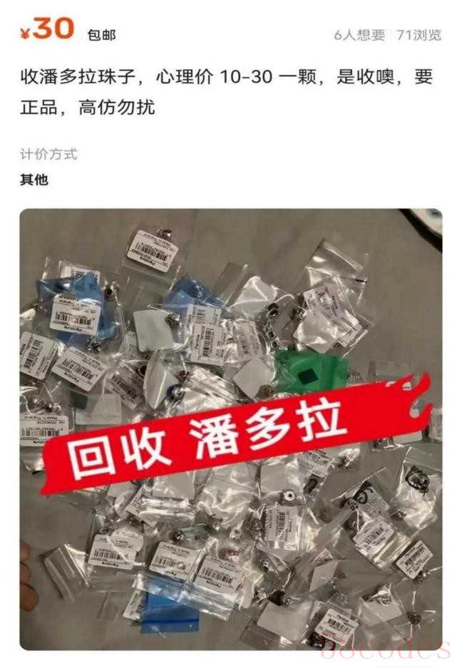 潘多拉在二手市场基本都是拆开了算,按每件10-30元回收,原来成千上万买的大堆饰品,算下来也不过二三百块,压根就谈不上保值和收藏价值。