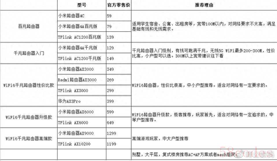 就目前我司主要零售且热门的机型给大家分享一下,大家可以根据自己的需求选择适合自己的路由器。