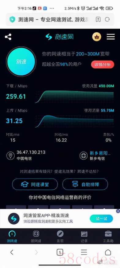 如果想测无线的速度,手机连接5GWiFi后,浏览器或者使用speedtest这个APP来测试一下,作为无线速率的参考。