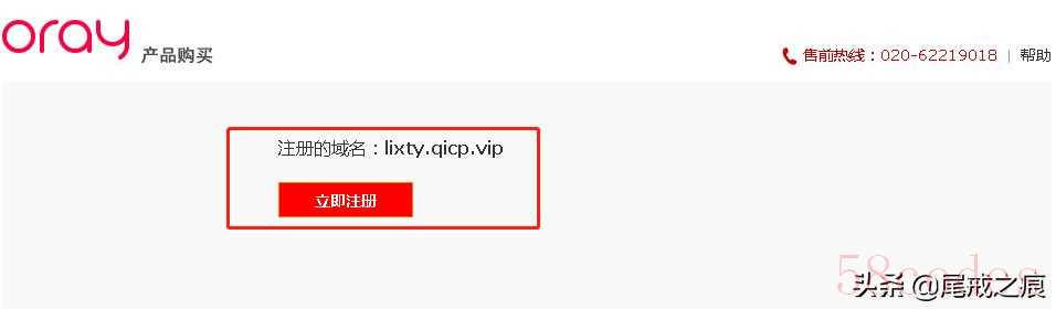 4、搜索自己想要注册的域名,在搜索结果里面选择需要注册的域名,点击“立即注册”。