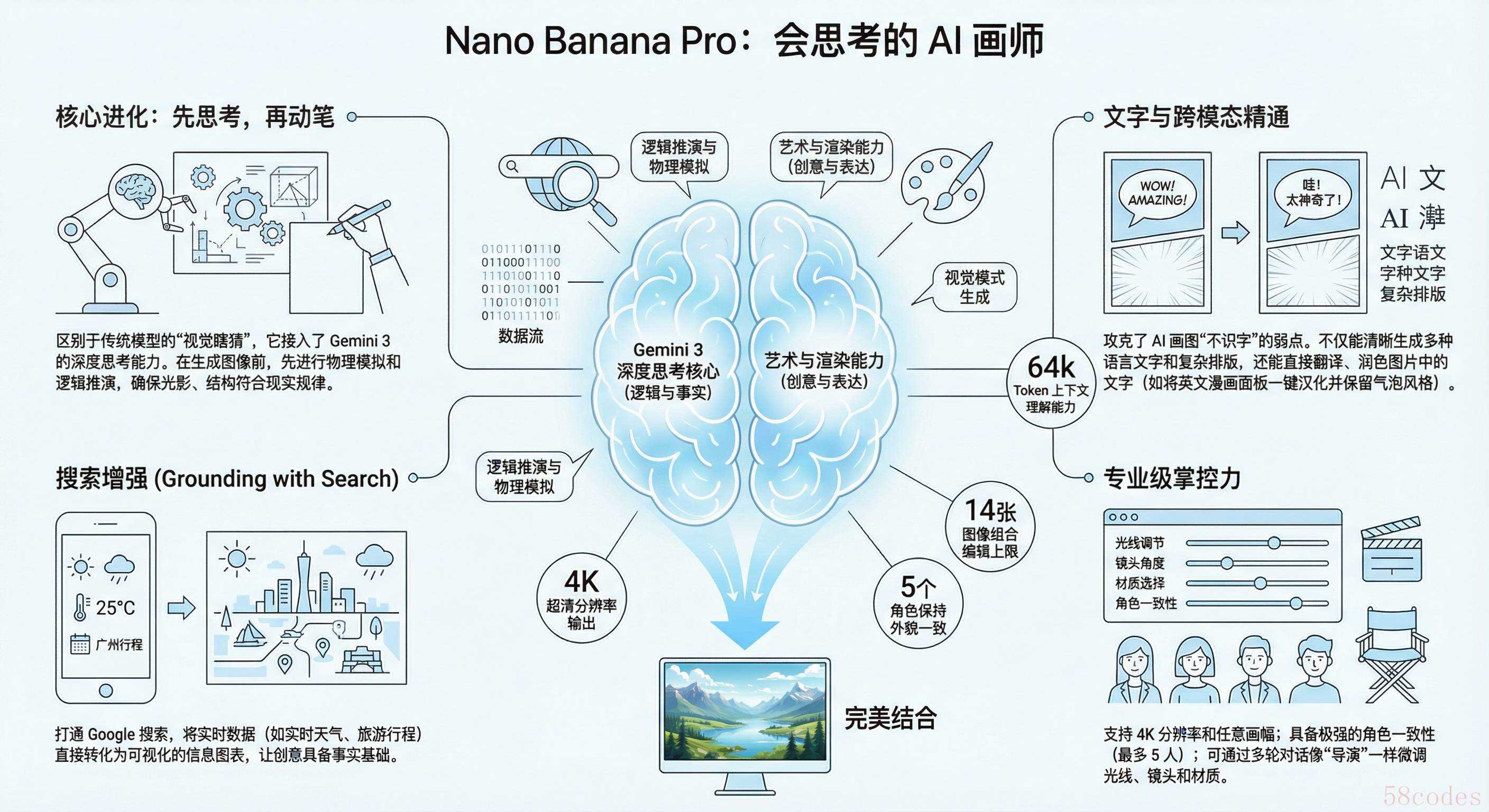 2、它是懂物理和历史的。基于 Gemini 3 的推理能力,这个模型拥有更丰富的世界知识,它可以生成逻辑严密的图表,或符合历史事实的场景。