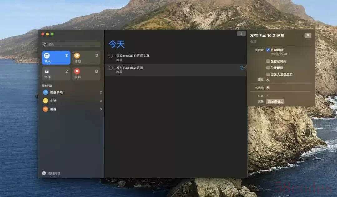其中值得一说的是「提醒安排」。这个软件因为功能简陋,一直都被关进苹果自带应用的冷宫里。在 iOS 13 的更新中,苹果对其进行了重新设计,而 macOS 也是如此。